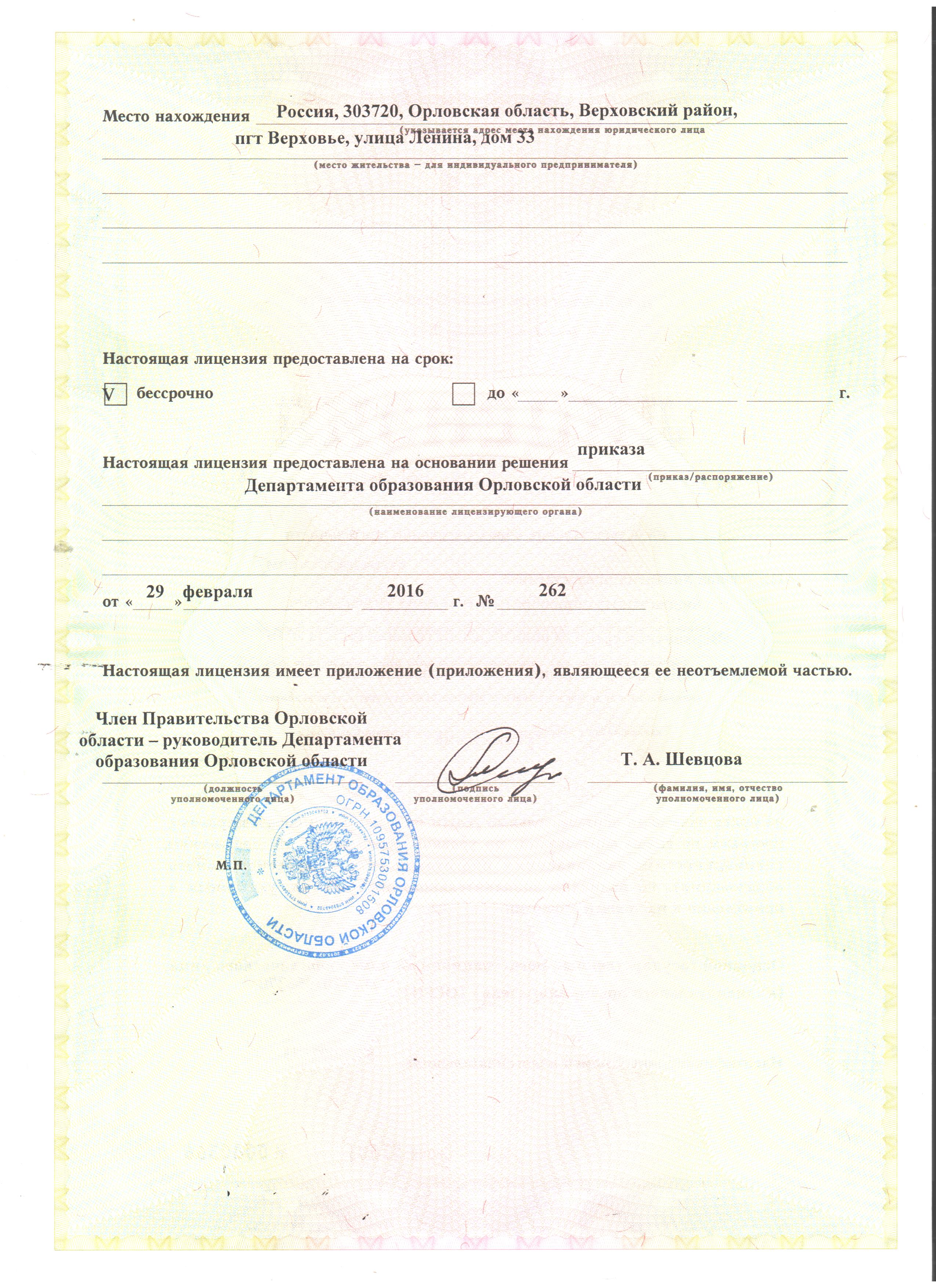 Реквизиты лицензии на право ведения образовательной деятельности: